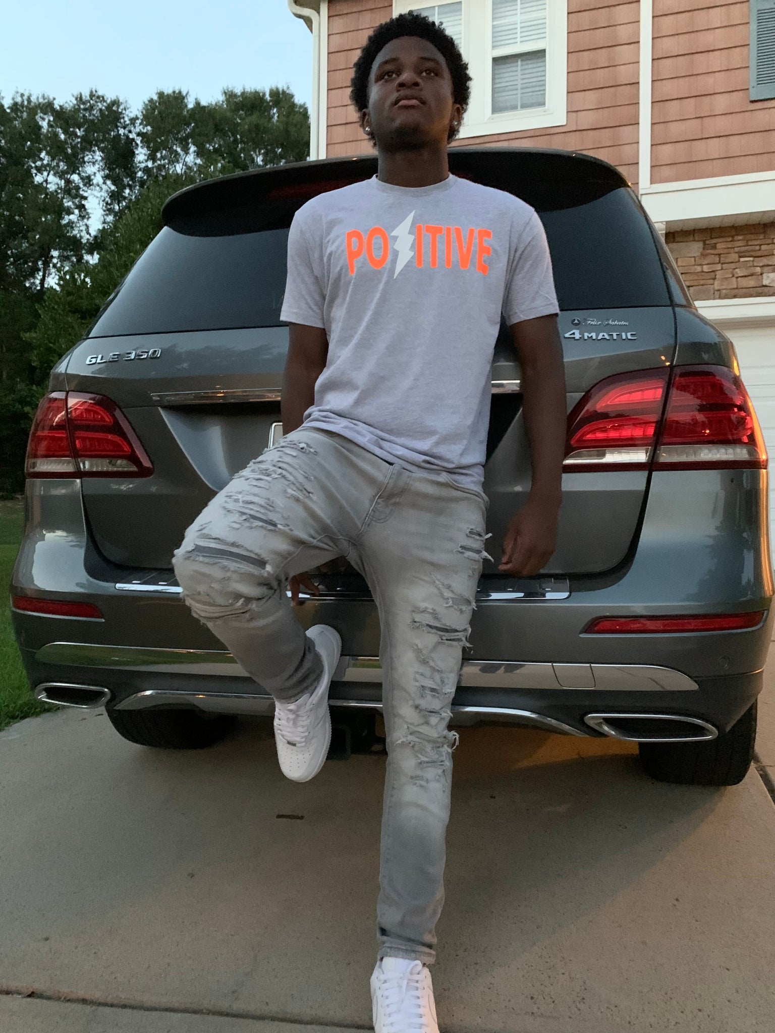 Refresh your rotation with this new Positive Tee. Light Grey with Fluorescent Orange & White Lighting Bolt.