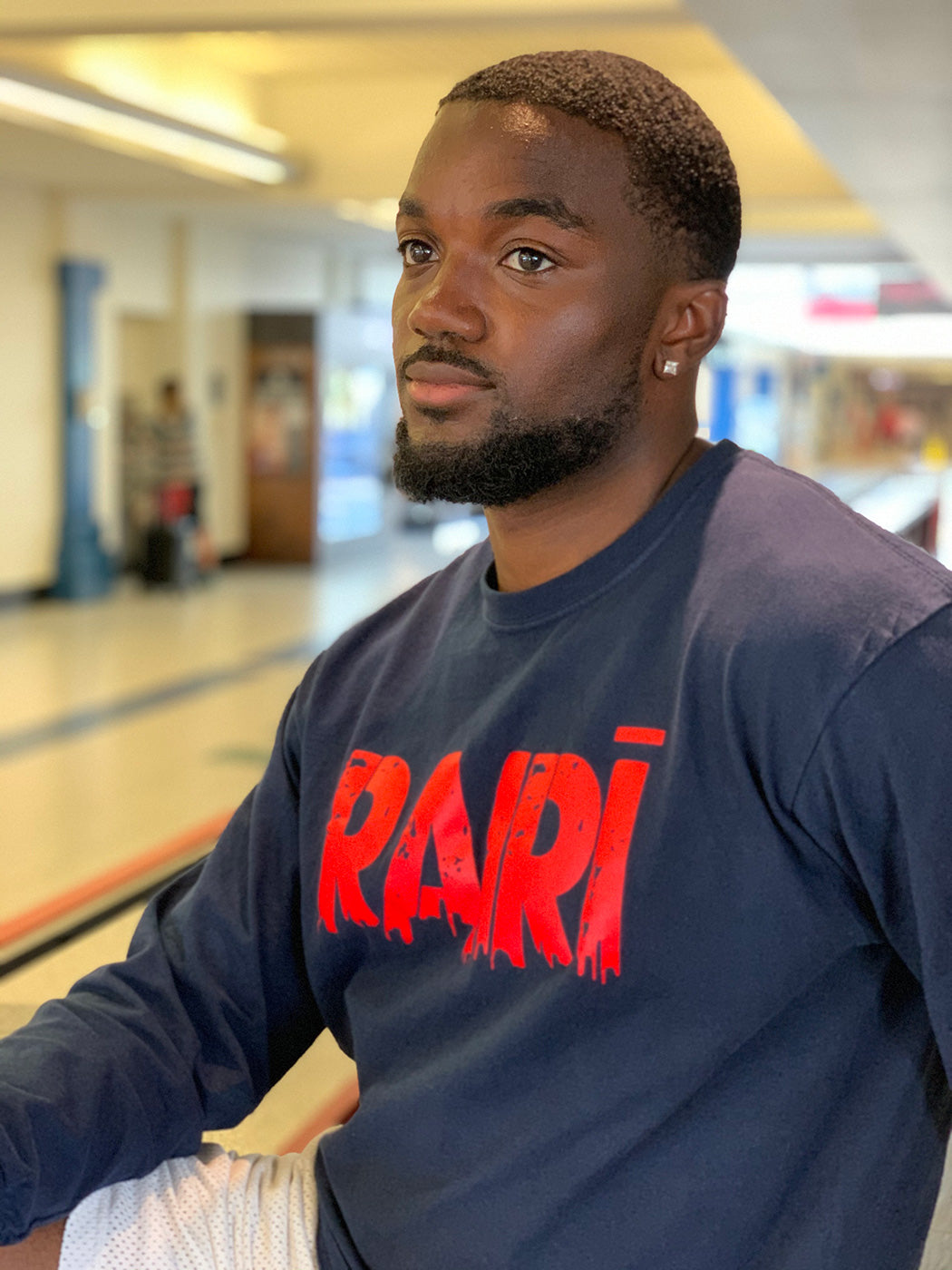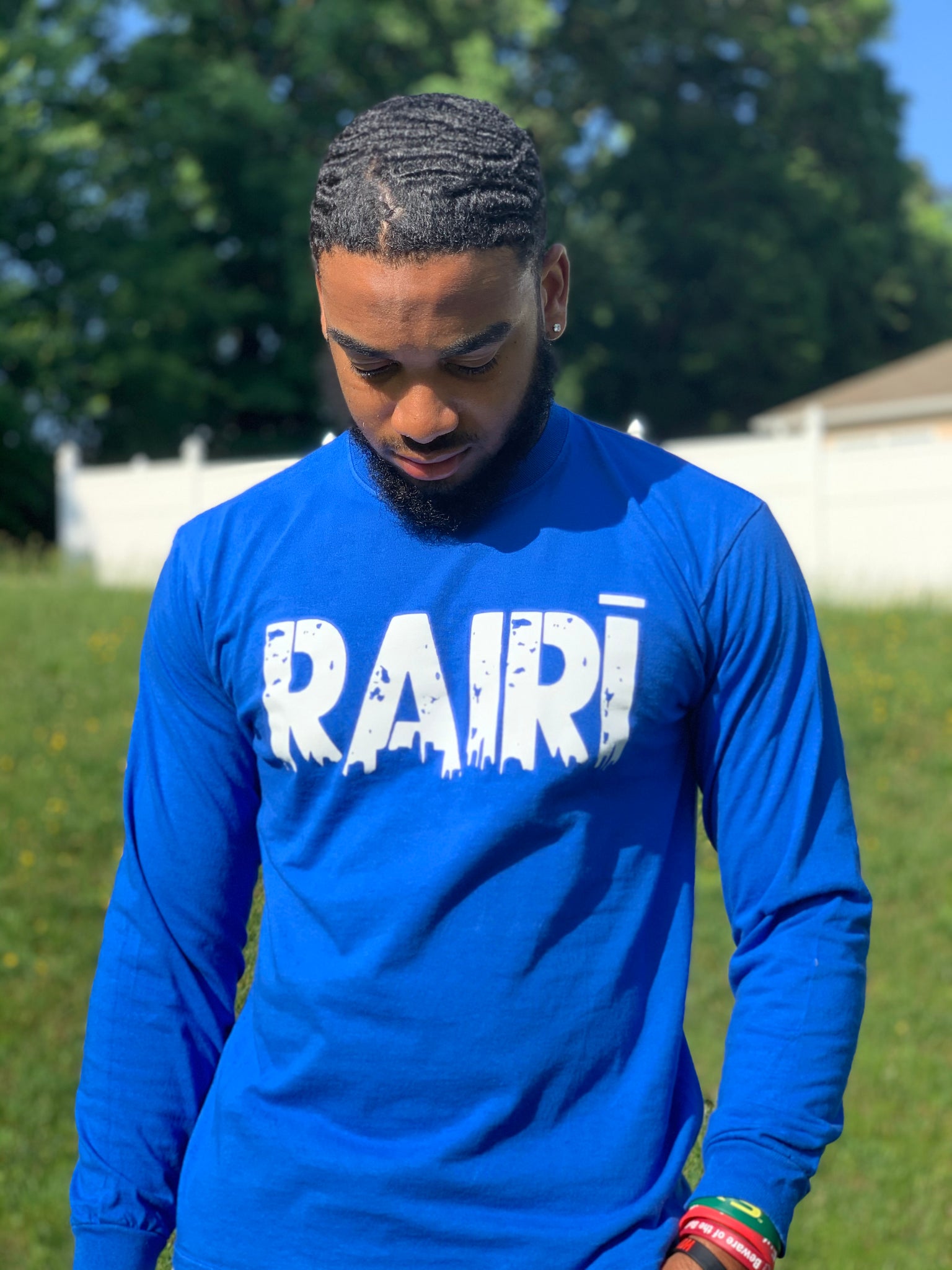 This Unisex Long-sleeve Tee with White blends a street-inspired aesthetic with comfortable, durable construction. Made in black cotton with a bright red RAIRI print to chest